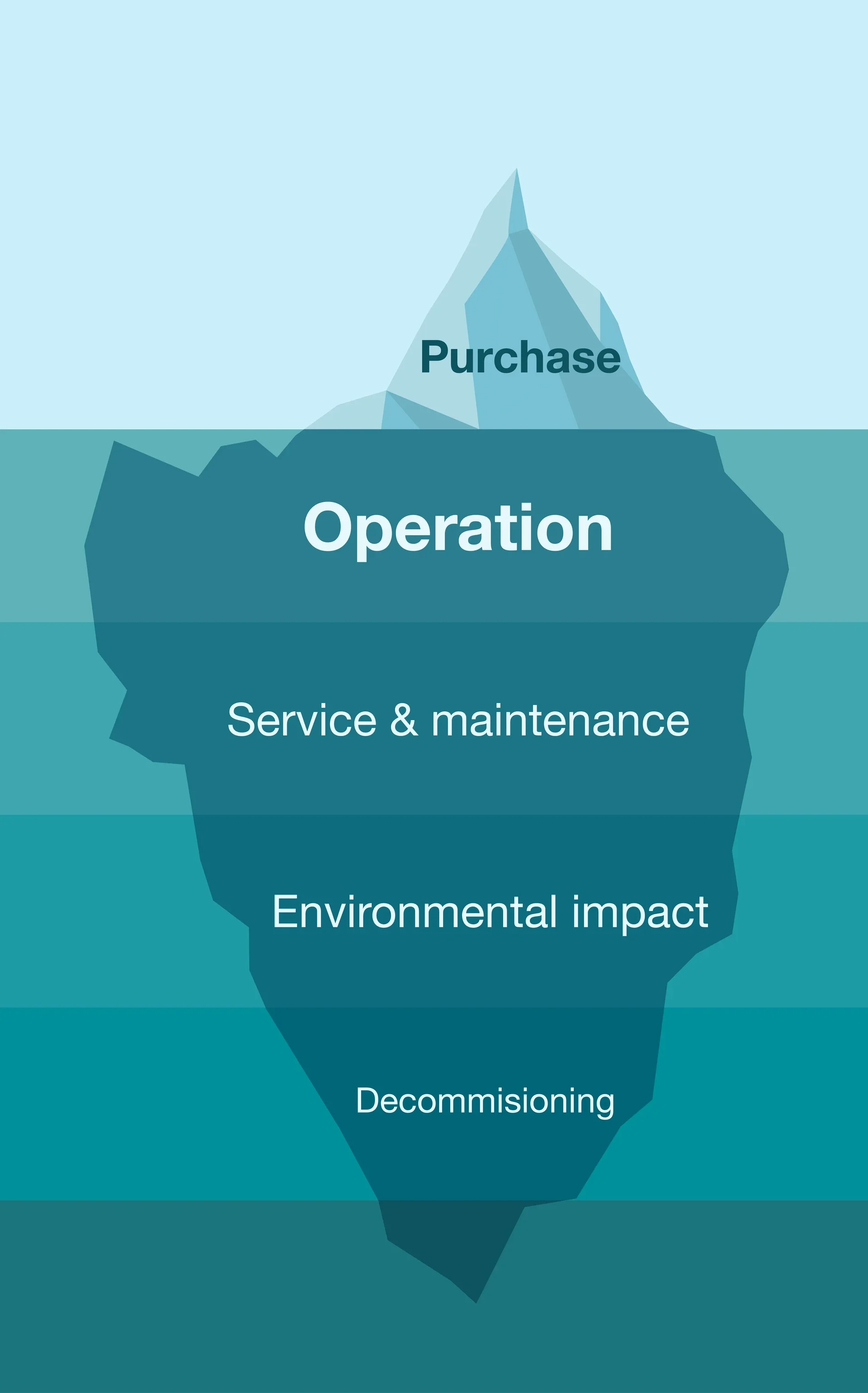 In addition to operating costs, the cost of servicing, maintenance, spare parts, environmental impact and even the decommissioning of the product need to be taken into account. These costs can account for as much as 90 % of the lifetime cost. Another bonus effect of buying a more energy efficient product is that it increases property value.