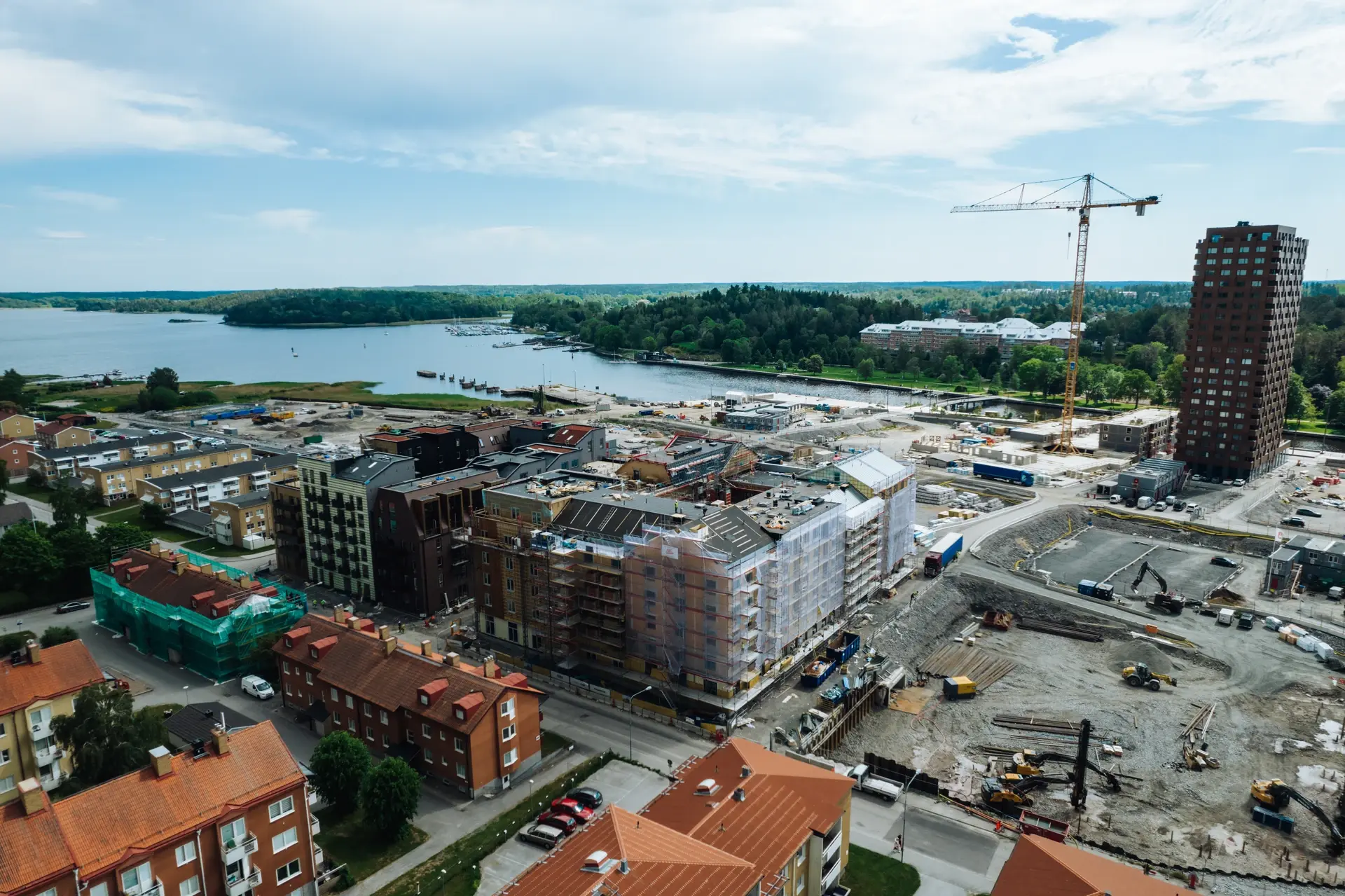 In the Norrtälje port, a new block is taking shape and construction happens at full pace. The idea of rebuilding the old port area is to create a living block for children, boats and swimming.